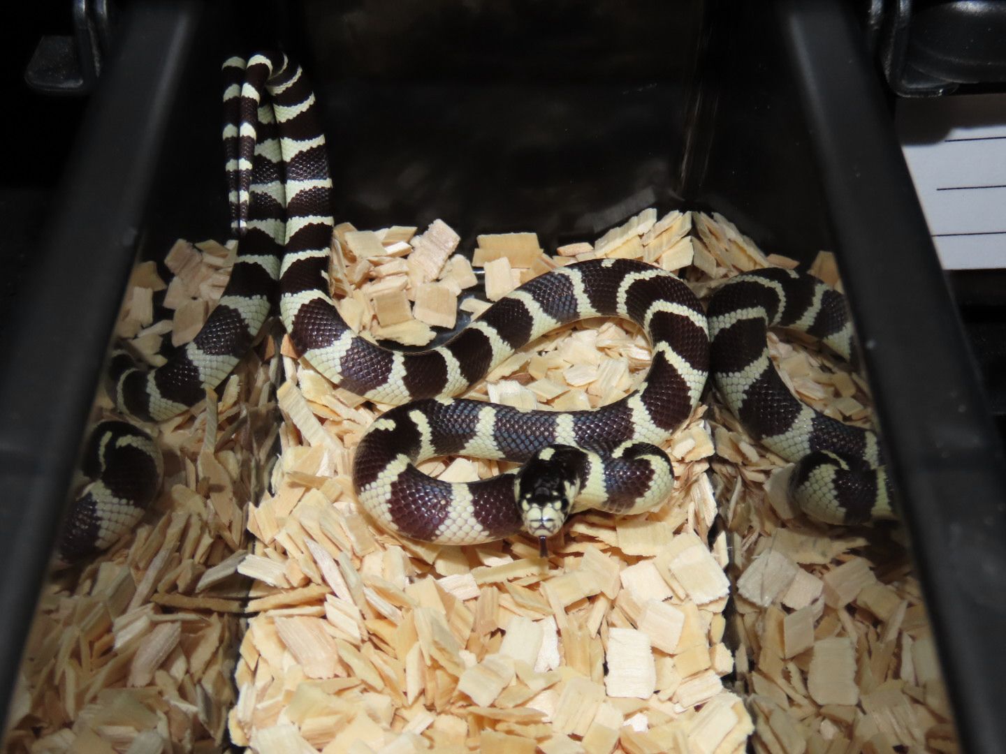 נקבה קינג קליפורניה יחד עם פלסטיקה מותאמת לזוחלים, משטח חימום, תרמוסטט, מצע, מסתור, כלי מים ופינצטה במחיר מבצע של 999 ש"ח!